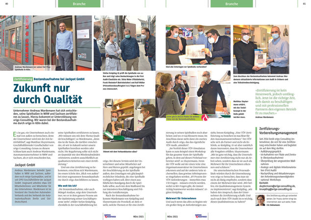 Das Thema der Zertifizierung begleitet seit Jahren die Automatenbranche und wird durch den Entwurf des Glücksspielneuregulierungsstaatsvertrages vom 12.03.2020 mit den Worten „…Erlaubnis erteilt…, wenn mindestens alle Spielhallen von einer akkreditierten Prüforganisation zertifiziert worden sind und die Zertifizierung in regelmäßigen Abständen, mindestens alle zwei Jahre, wiederholt wird,…“ definiert. Konkret heißt das, dass zum Erhalt von Konzessionen eine Zertifizierung ab Juli 2021 vorausgesetzt wird.